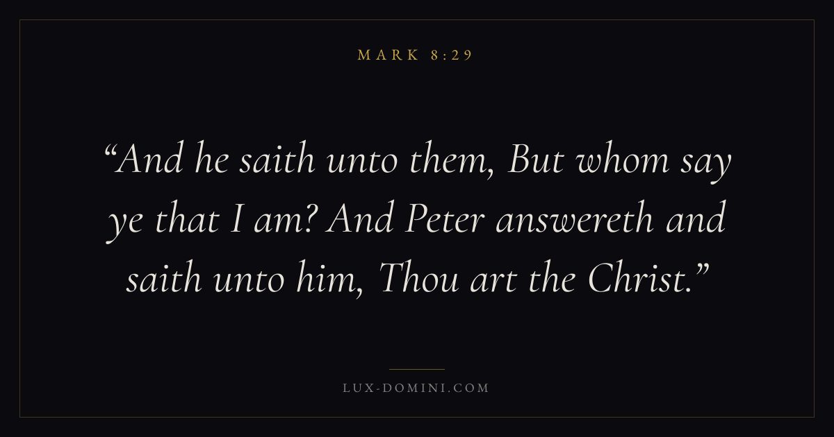 And he saith unto them, But whom say ye that I am? And Peter answereth and saith unto him, Thou art the Christ.
