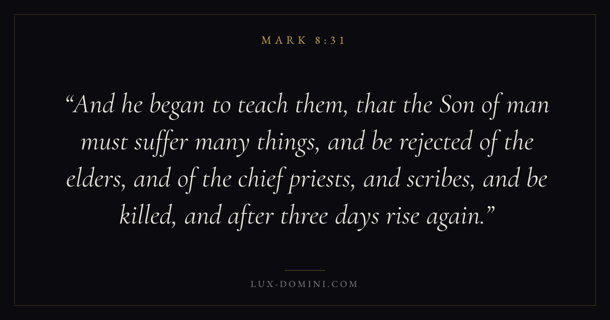 And he began to teach them, that the Son of man must suffer many things, and be rejected of the elders, and of the chief priests, and scribes, and be killed, and after three days rise again.