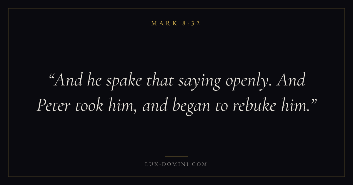 And he spake that saying openly. And Peter took him, and began to rebuke him.