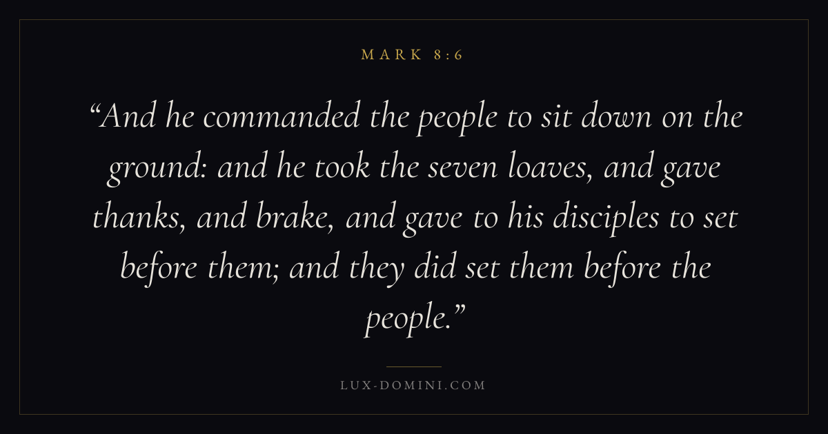 And he commanded the people to sit down on the ground: and he took the seven loaves, and gave thanks, and brake, and gave to his disciples to set before them; and they did set them before the people.