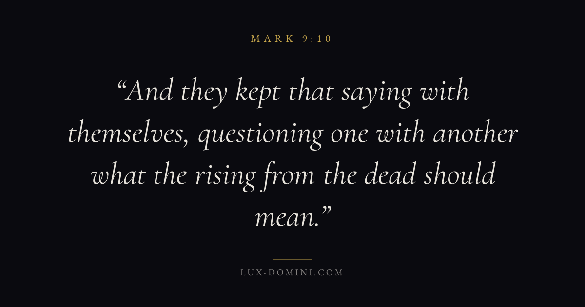 And they kept that saying with themselves, questioning one with another what the rising from the dead should mean.