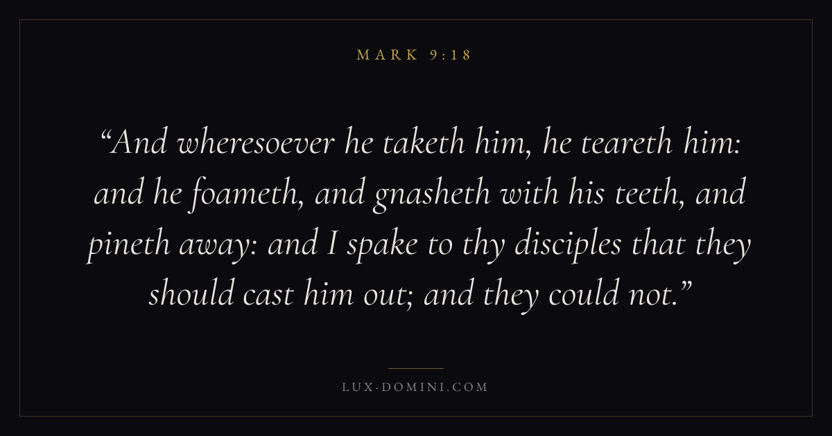 And wheresoever he taketh him, he teareth him: and he foameth, and gnasheth with his teeth, and pineth away: and I spake to thy disciples that they should cast him out; and they could not.