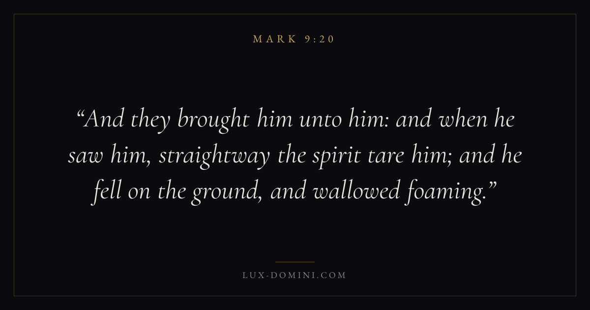 And they brought him unto him: and when he saw him, straightway the spirit tare him; and he fell on the ground, and wallowed foaming.