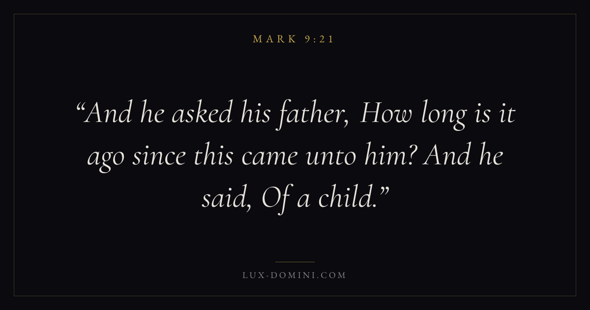 And he asked his father, How long is it ago since this came unto him? And he said, Of a child.
