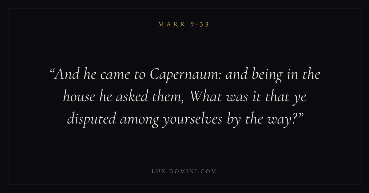 And he came to Capernaum: and being in the house he asked them, What was it that ye disputed among yourselves by the way?