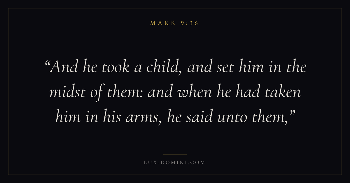 And he took a child, and set him in the midst of them: and when he had taken him in his arms, he said unto them,