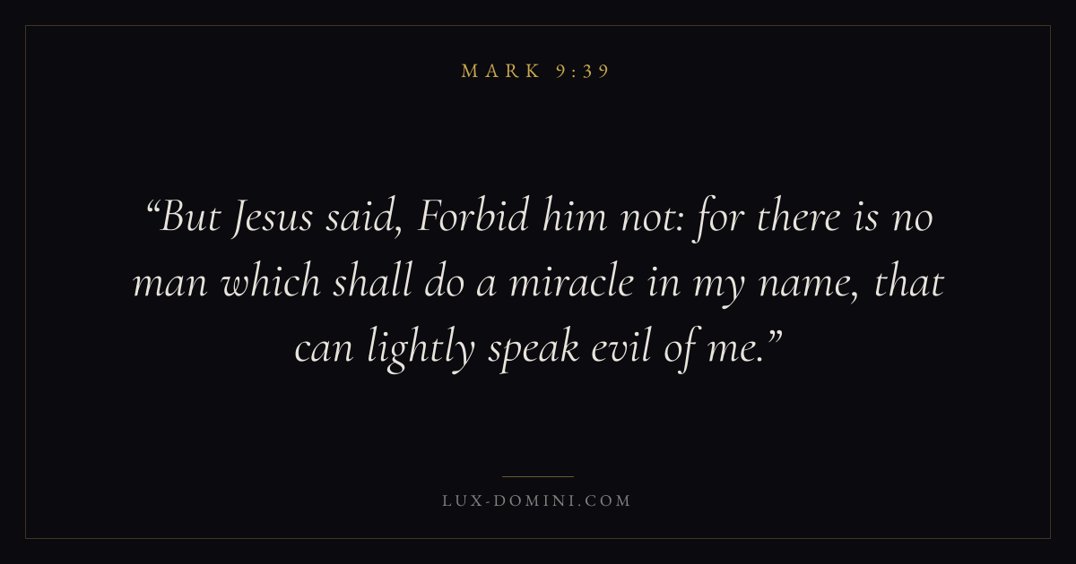 But Jesus said, Forbid him not: for there is no man which shall do a miracle in my name, that can lightly speak evil of me.