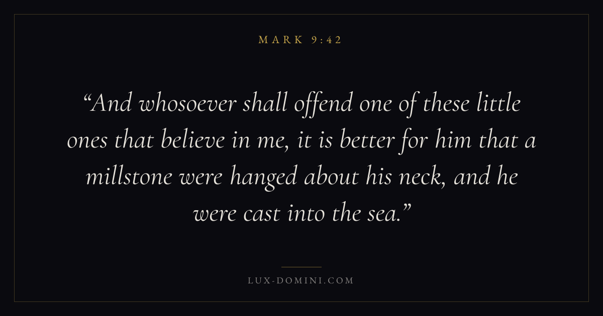 And whosoever shall offend one of these little ones that believe in me, it is better for him that a millstone were hanged about his neck, and he were cast into the sea.