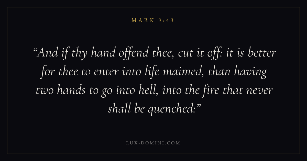 And if thy hand offend thee, cut it off: it is better for thee to enter into life maimed, than having two hands to go into hell, into the fire that never shall be quenched: