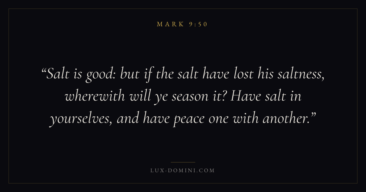 Salt is good: but if the salt have lost his saltness, wherewith will ye season it? Have salt in yourselves, and have peace one with another.