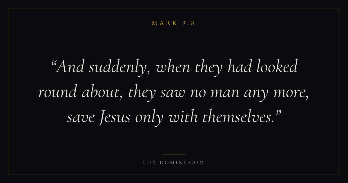 And suddenly, when they had looked round about, they saw no man any more, save Jesus only with themselves.