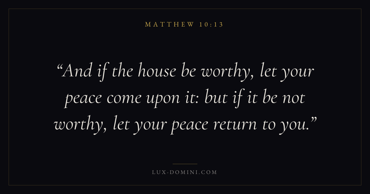 And if the house be worthy, let your peace come upon it: but if it be not worthy, let your peace return to you.