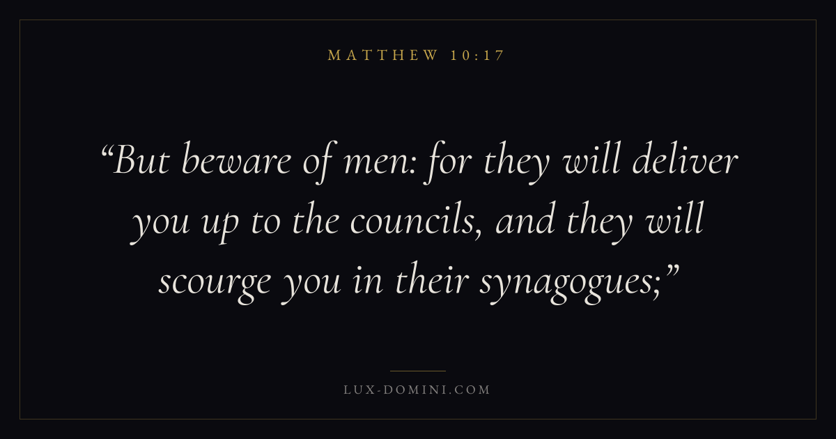But beware of men: for they will deliver you up to the councils, and they will scourge you in their synagogues;