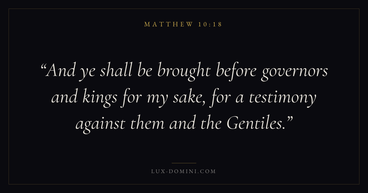 And ye shall be brought before governors and kings for my sake, for a testimony against them and the Gentiles.