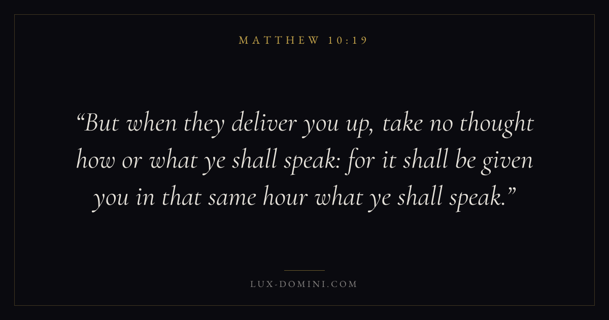 But when they deliver you up, take no thought how or what ye shall speak: for it shall be given you in that same hour what ye shall speak.