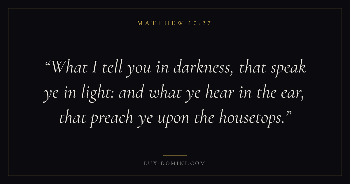 What I tell you in darkness, that speak ye in light: and what ye hear in the ear, that preach ye upon the housetops.