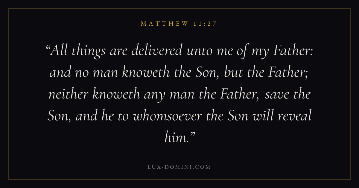 All things are delivered unto me of my Father: and no man knoweth the Son, but the Father; neither knoweth any man the Father, save the Son, and he to whomsoever the Son will reveal him.