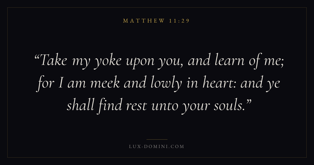 Take my yoke upon you, and learn of me; for I am meek and lowly in heart: and ye shall find rest unto your souls.
