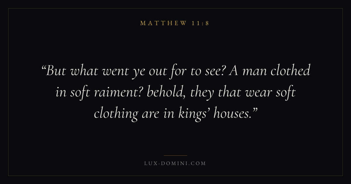 But what went ye out for to see? A man clothed in soft raiment? behold, they that wear soft clothing are in kings’ houses.