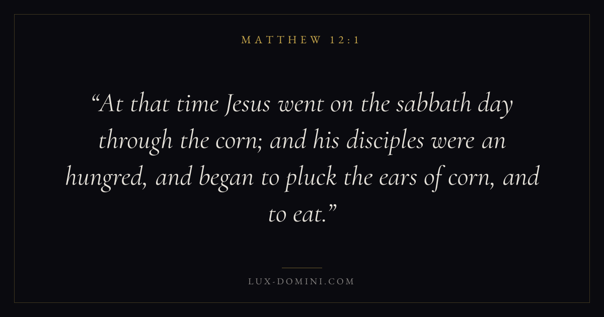 At that time Jesus went on the sabbath day through the corn; and his disciples were an hungred, and began to pluck the ears of corn, and to eat.