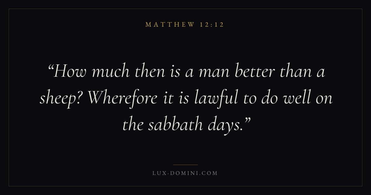 How much then is a man better than a sheep? Wherefore it is lawful to do well on the sabbath days.