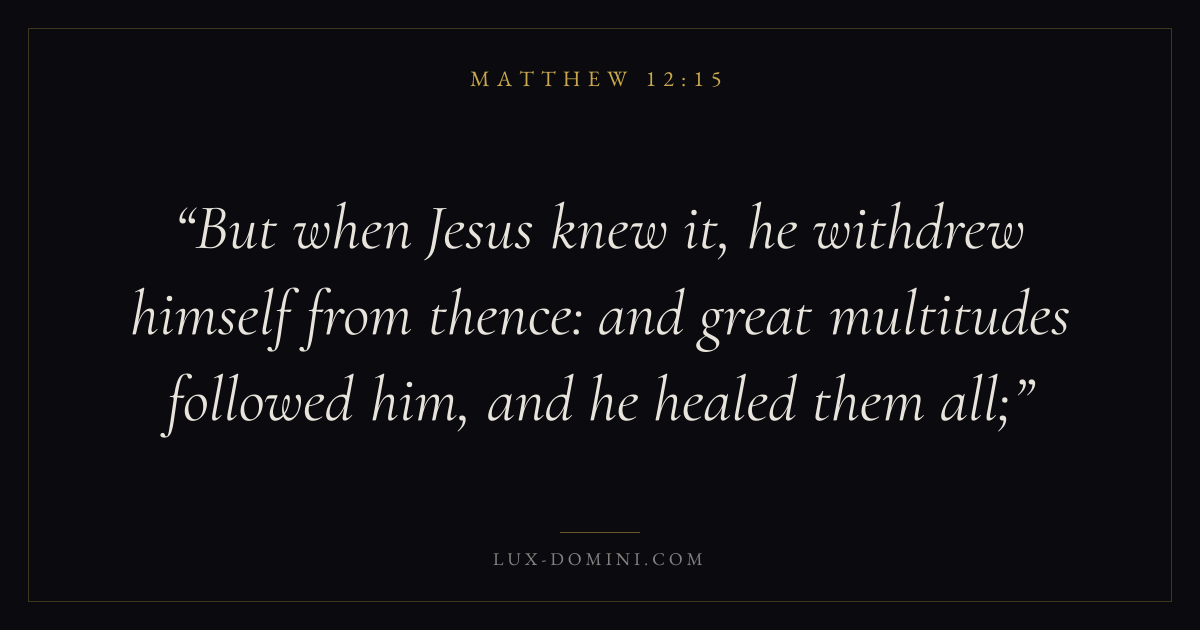 But when Jesus knew it, he withdrew himself from thence: and great multitudes followed him, and he healed them all;