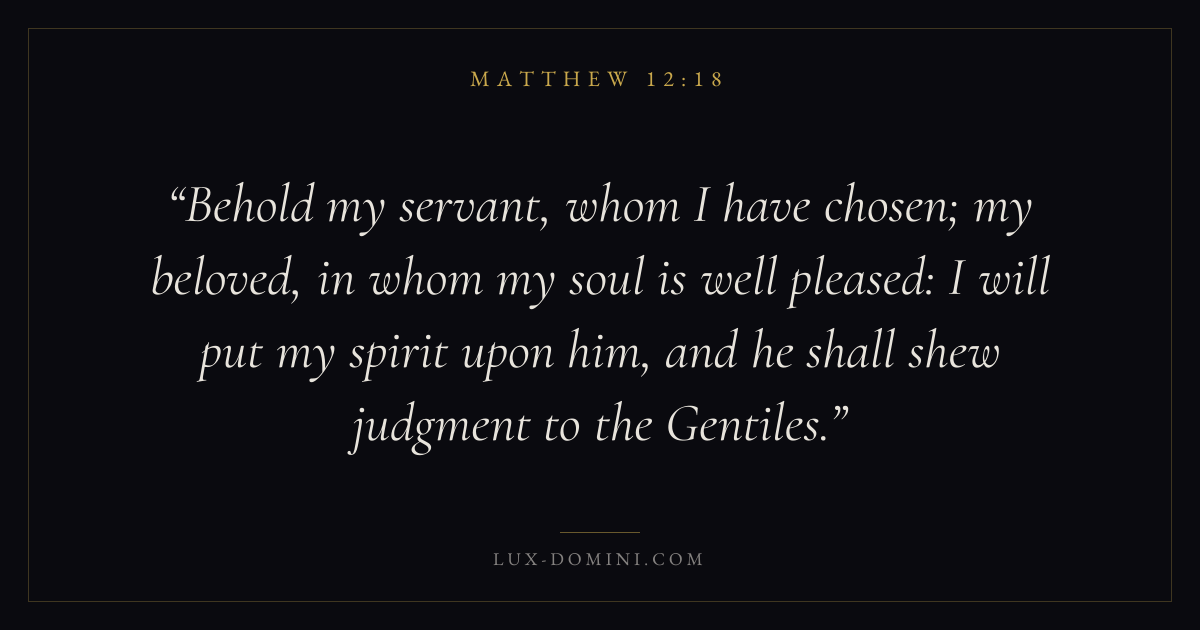 Behold my servant, whom I have chosen; my beloved, in whom my soul is well pleased: I will put my spirit upon him, and he shall shew judgment to the Gentiles.