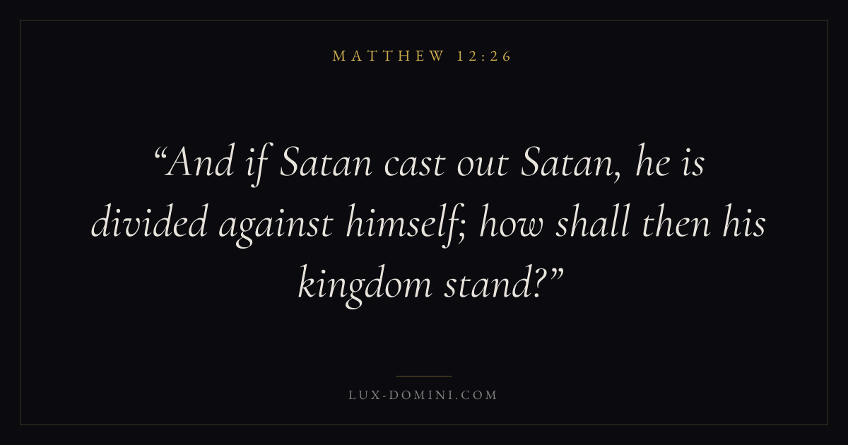 And if Satan cast out Satan, he is divided against himself; how shall then his kingdom stand?