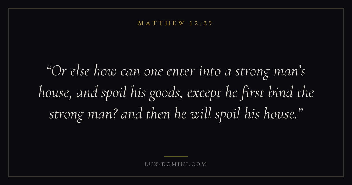 Or else how can one enter into a strong man’s house, and spoil his goods, except he first bind the strong man? and then he will spoil his house.