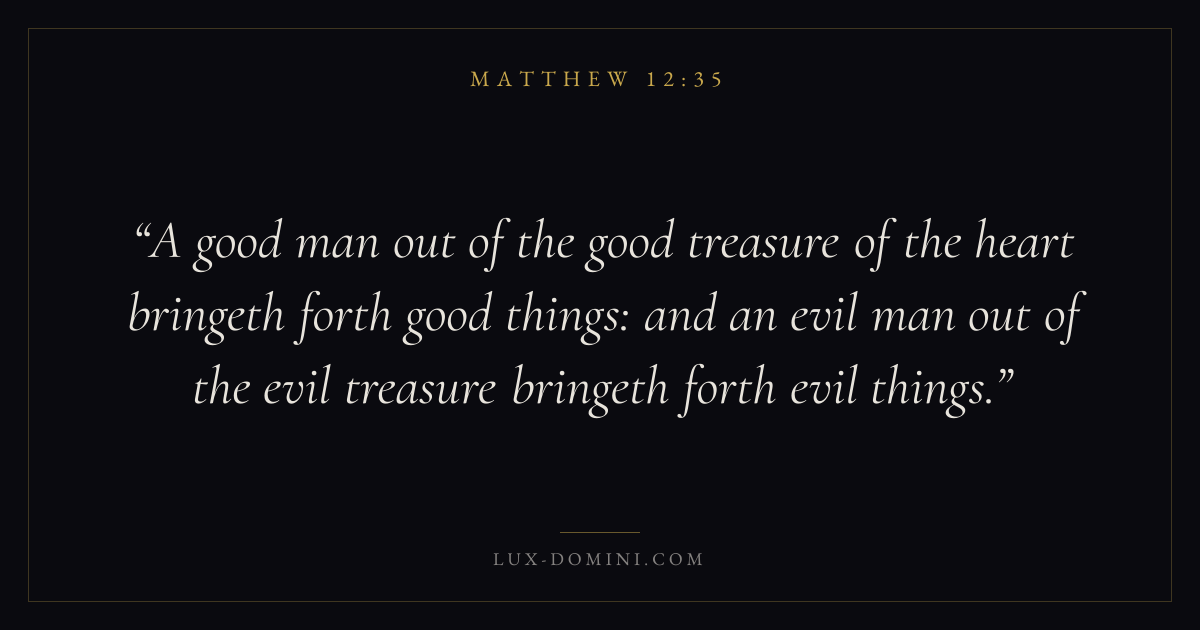 A good man out of the good treasure of the heart bringeth forth good things: and an evil man out of the evil treasure bringeth forth evil things.