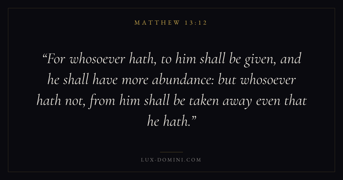 For whosoever hath, to him shall be given, and he shall have more abundance: but whosoever hath not, from him shall be taken away even that he hath.