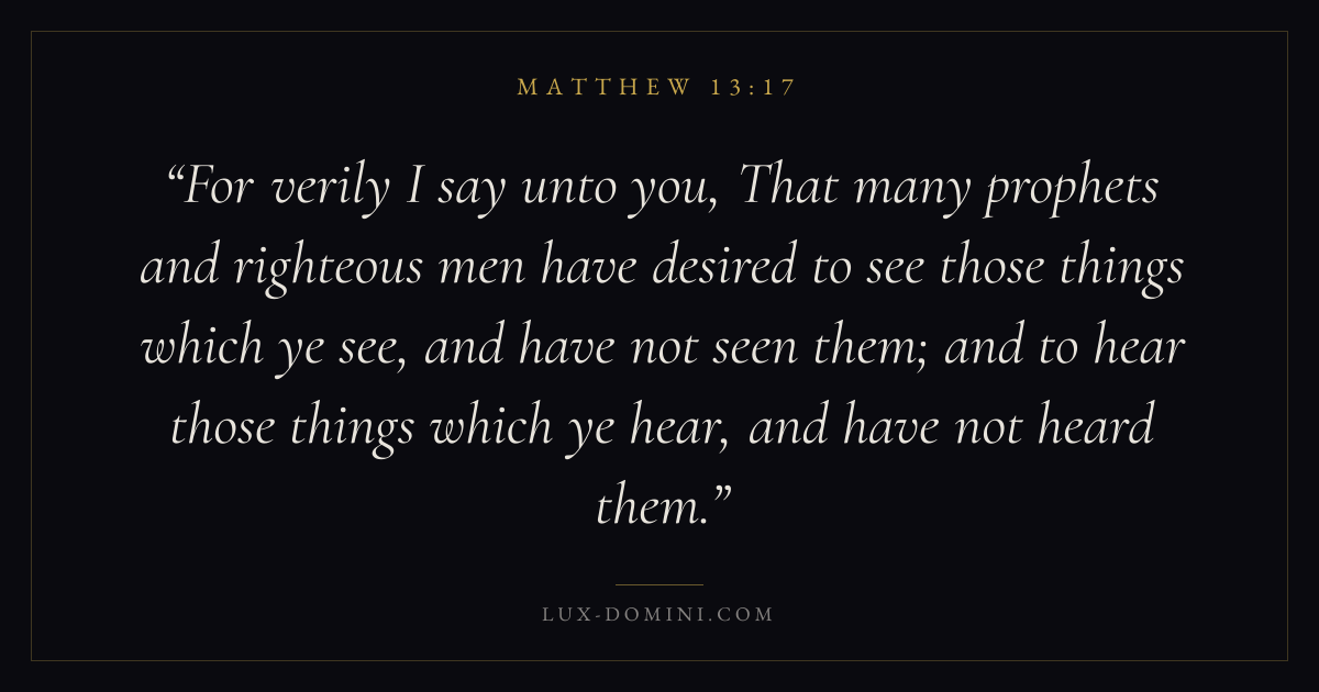 For verily I say unto you, That many prophets and righteous men have desired to see those things which ye see, and have not seen them; and to hear those things which ye hear, and have not heard them.