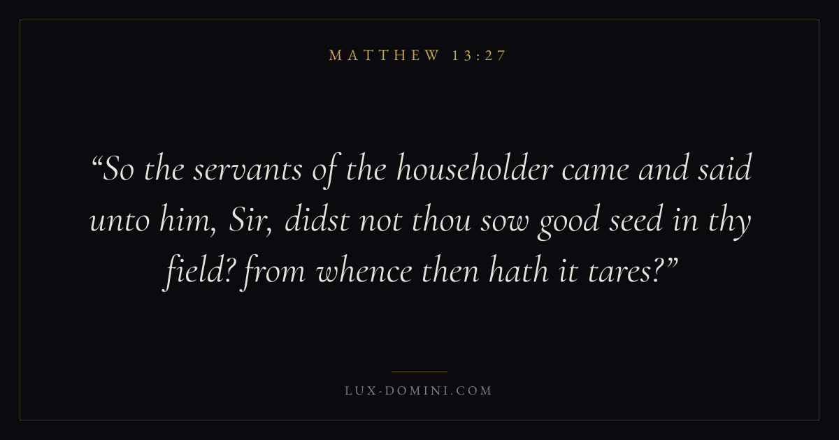 So the servants of the householder came and said unto him, Sir, didst not thou sow good seed in thy field? from whence then hath it tares?