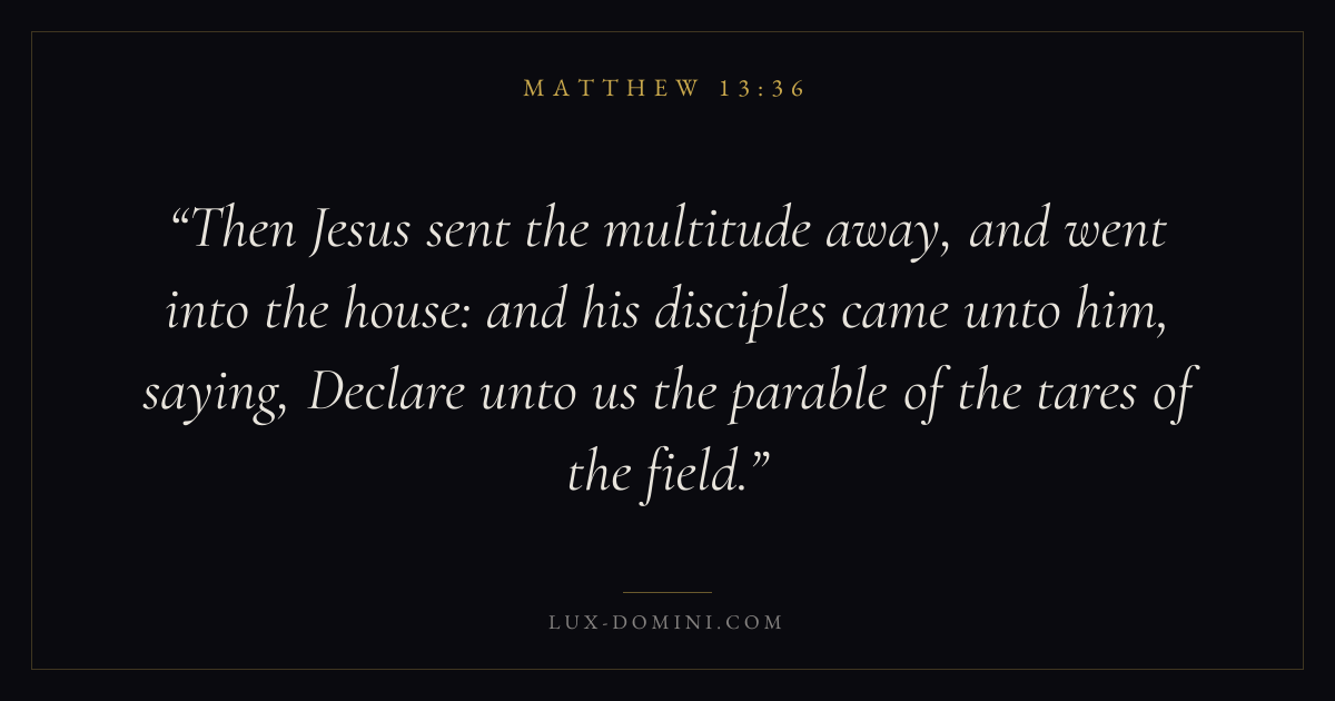 Then Jesus sent the multitude away, and went into the house: and his disciples came unto him, saying, Declare unto us the parable of the tares of the field.