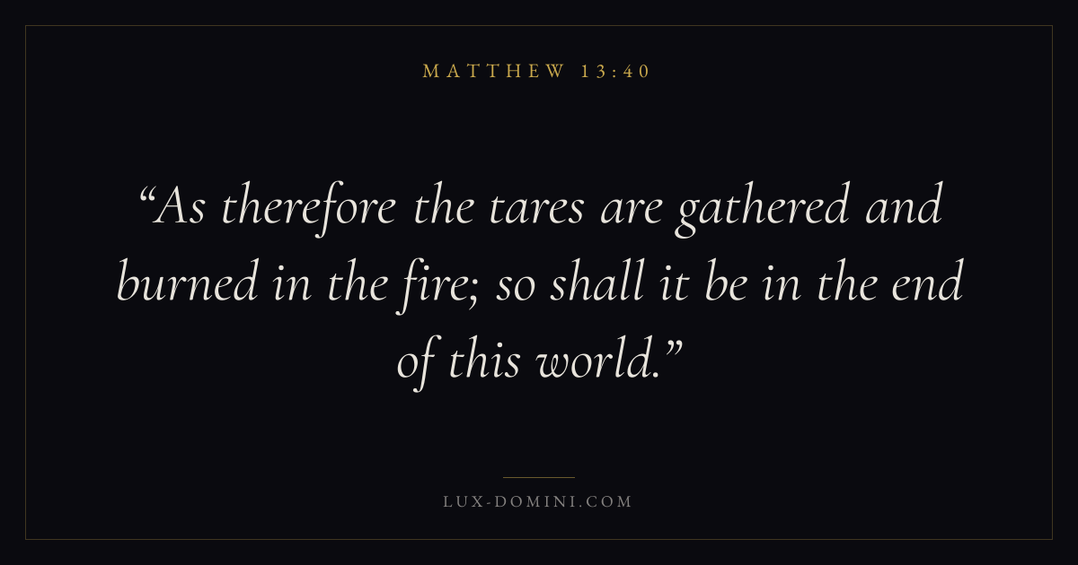 As therefore the tares are gathered and burned in the fire; so shall it be in the end of this world.