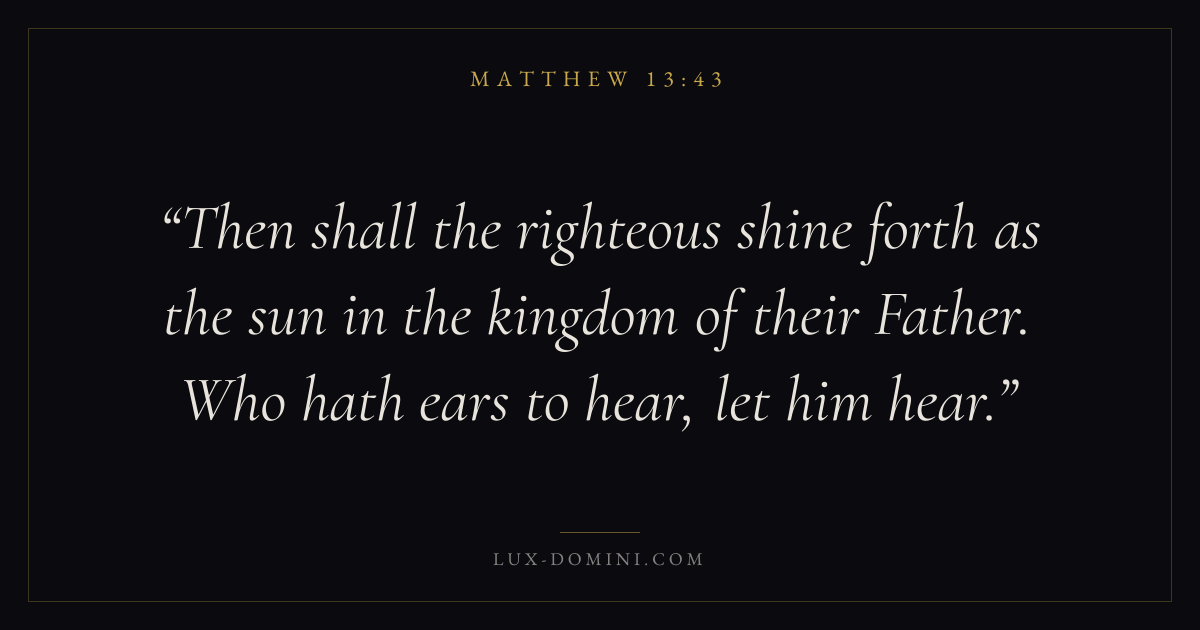 Then shall the righteous shine forth as the sun in the kingdom of their Father. Who hath ears to hear, let him hear.
