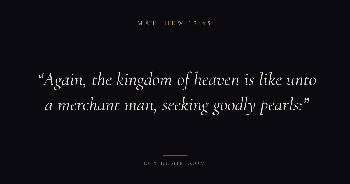 Again, the kingdom of heaven is like unto a merchant man, seeking goodly pearls: