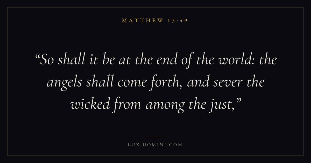 So shall it be at the end of the world: the angels shall come forth, and sever the wicked from among the just,