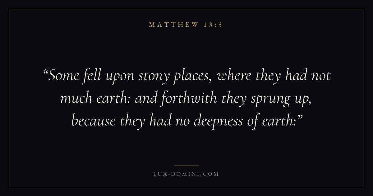 Some fell upon stony places, where they had not much earth: and forthwith they sprung up, because they had no deepness of earth: