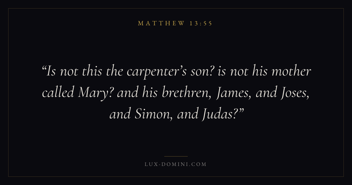 Is not this the carpenter’s son? is not his mother called Mary? and his brethren, James, and Joses, and Simon, and Judas?