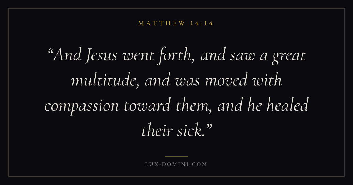 And Jesus went forth, and saw a great multitude, and was moved with compassion toward them, and he healed their sick.