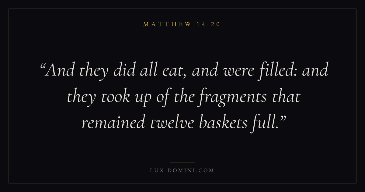 And they did all eat, and were filled: and they took up of the fragments that remained twelve baskets full.