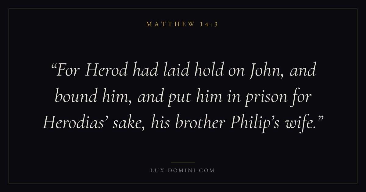 For Herod had laid hold on John, and bound him, and put him in prison for Herodias’ sake, his brother Philip’s wife.