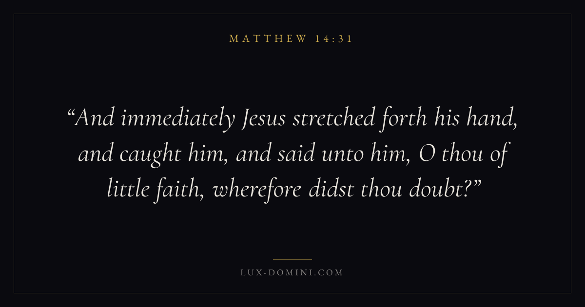 And immediately Jesus stretched forth his hand, and caught him, and said unto him, O thou of little faith, wherefore didst thou doubt?
