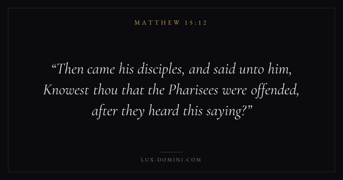 Then came his disciples, and said unto him, Knowest thou that the Pharisees were offended, after they heard this saying?