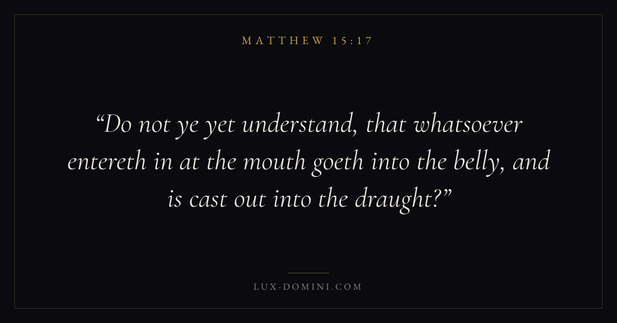Do not ye yet understand, that whatsoever entereth in at the mouth goeth into the belly, and is cast out into the draught?