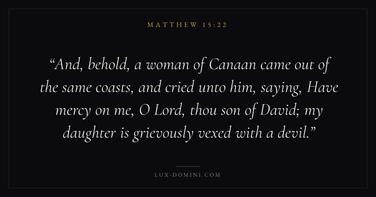 And, behold, a woman of Canaan came out of the same coasts, and cried unto him, saying, Have mercy on me, O Lord, thou son of David; my daughter is grievously vexed with a devil.