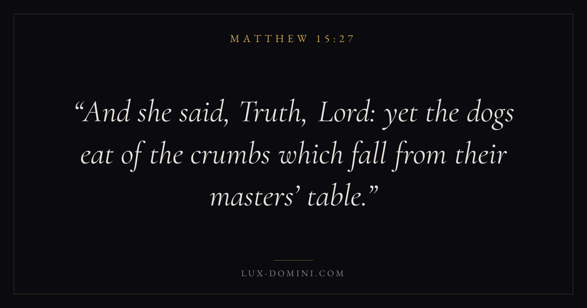 And she said, Truth, Lord: yet the dogs eat of the crumbs which fall from their masters’ table.