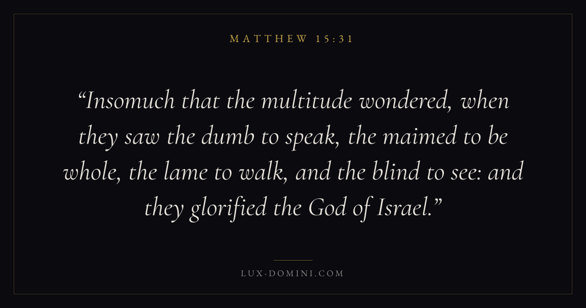 Insomuch that the multitude wondered, when they saw the dumb to speak, the maimed to be whole, the lame to walk, and the blind to see: and they glorified the God of Israel.