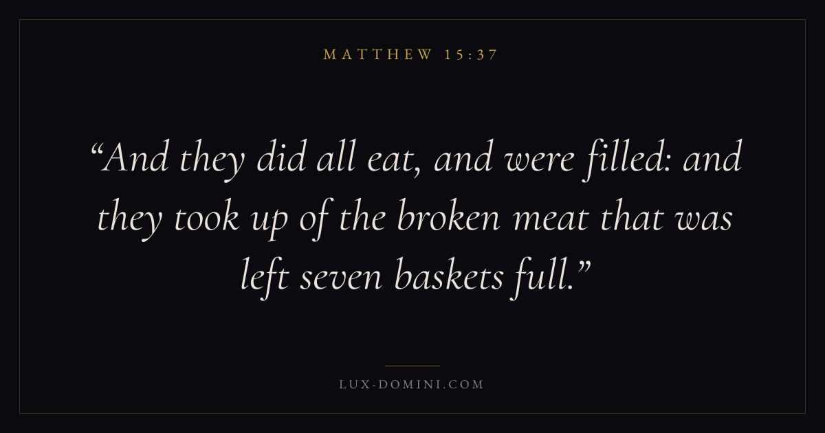 And they did all eat, and were filled: and they took up of the broken meat that was left seven baskets full.